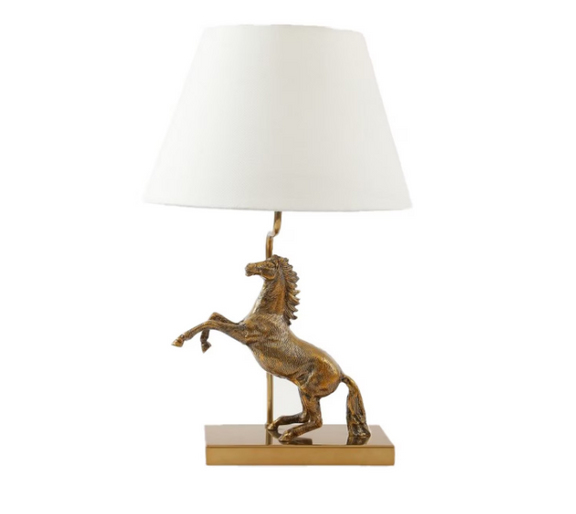 ALUMINIUM HORSE LAMP WITH WHITE SHADE