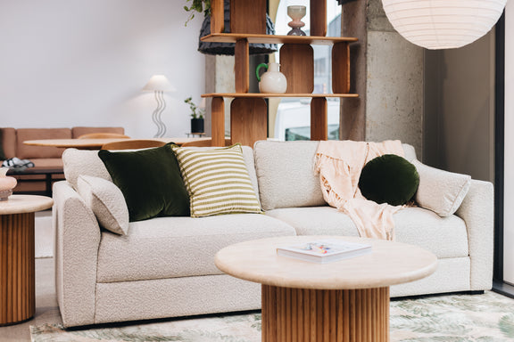 Soft curves, serious comfort. Bonnie is the kind of sofa that whispers “cancel your plans” the moment you sit down. Upholstered in a cloudlike bouclé and generously cushioned, she’s low-slung, loungey, and built for real-life relaxing — feet up, snacks nearby, remote in hand.