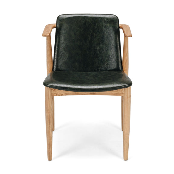 Cutting a striking silhouette the Flores Dining Chair represents timeless mid-century design. Its arms are designed to sit snugly under most dining table profiles whilst its durable "antique" finished and double-stitched PU upholstery effortlessly stands up to stains and spills. Stunning grained ash completes the look of this classic dining chair.
