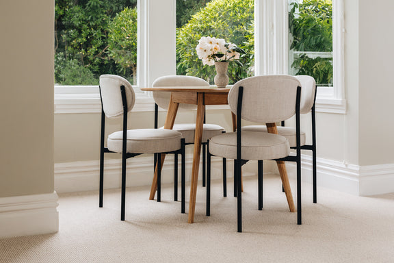 Upgrade your seating situation with the Harmony Dining Chair – because every meal deserves a side of harmony. The "Harmony" isn't just a chair; it's a dance partner for your decor. The sleek metal legs waltz with the plush linen upholstery, creating a harmonious blend of durability and elegance. It's like a tango of texture and toughness, ensuring your dining experience hits all the right notes.