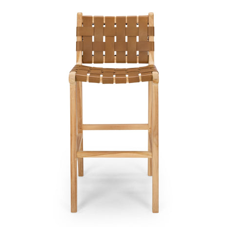 Add style and functionality to your space. With hand-woven leather and teak, this bar stool also has back support for comfort. Whether you're hosting friends or just need more seats in the kitchen, this bar stool will do the trick. Cocktails before dinner? Sitting on this bar stool your delightful guests will be too preoccupied sipping their delicious drinks to even think about leaving early. Trust us, once they sit on these beauties the only place they'll want to go is back for seconds.
