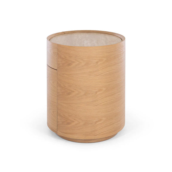 Muse Natural Oak Bedside 2drw (Travertine Top)