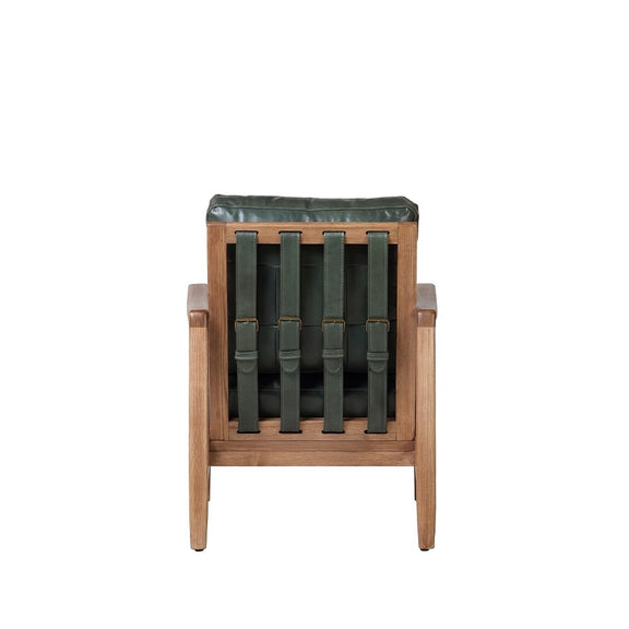 The one of a kind backrest features joined canvas and leather straps held together with a brass buckle, making for a bit of wow factor - especially if the back of the chair is visible for all to see.