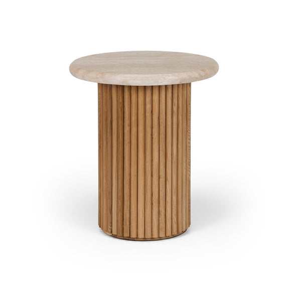 Rho Travertine Top Side Table 50rd (Natural Oak Base)