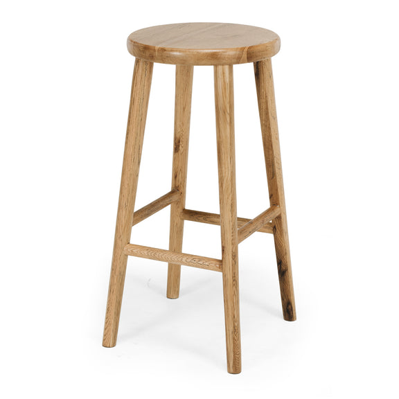 Understated, functional, and effortlessly stylish, this simple oak bar stool is designed for everyday comfort and versatility. Featuring a round seat and a streamlined silhouette, it tucks neatly under the counter when not in use, making it a practical choice for compact spaces. Crafted from solid oak, it showcases natural grain and warmth, while its sturdy legs are available in all-oak, oak with rustic white painted legs, or oak with rustic black painted legs, offering a range of finishes to suit different interiors. Perfect for casual dining, breakfast bars, or entertaining spaces, this stool is a timeless addition to any home.