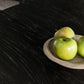 Made from American White Oak with a strong grain and stained with a Matte Black finish. The angular legs and simple shape mean this table can be paired with a large range of dining chair styles