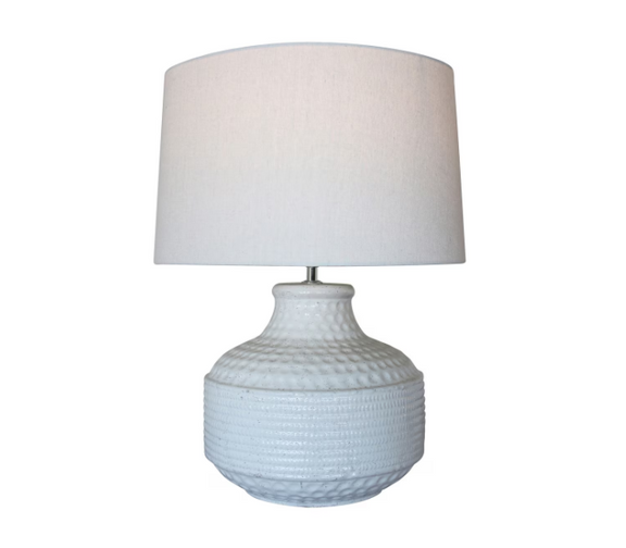 WHITE TERRACOTTA LAMP W/ WHITE LINEN SHADE